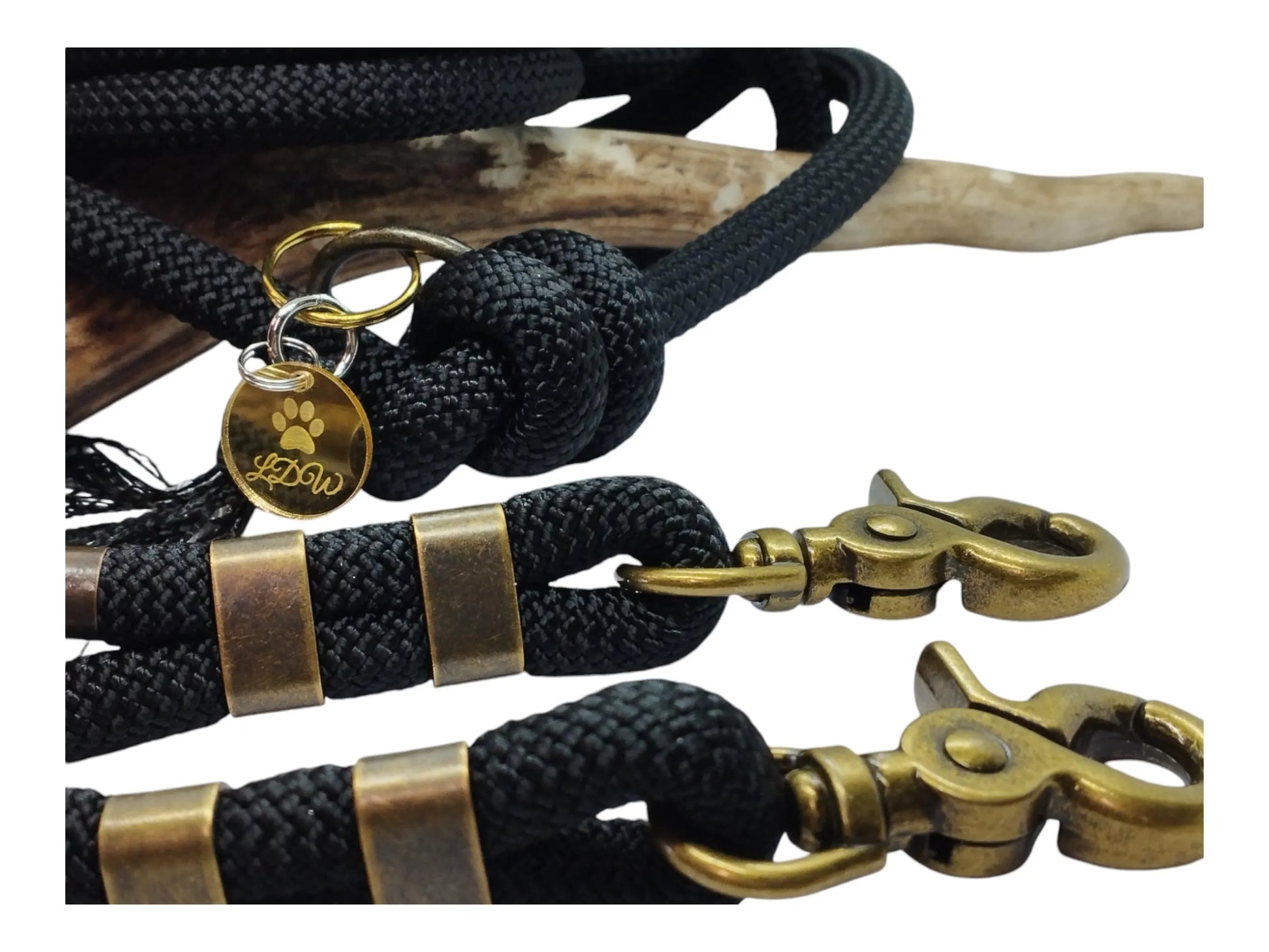 Laisse de wouf | Laisse 3 points Collection Noire Laiton Antique | 10mm